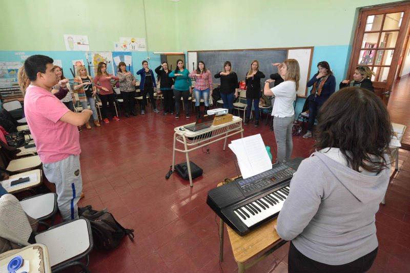Rio Gallegos | El Consejo Provincial de Educacin inici el dictado del Seminario-Taller El desafo de la conformacin de coros escolares, el pasado sbado, en la Escuela Primaria N 1 de Ro Gallegos. Las profesoras Romina Vacca y Susana Peralta estn a cargo del dictado del trayecto que tiene la finalidad de conformar coros con alumnos de 4 a 7 grado.