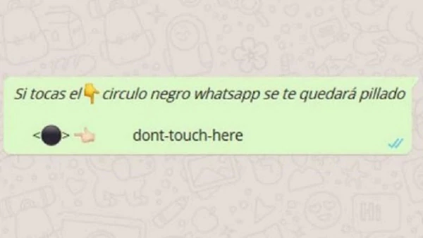 Rio Gallegos | Es un texto viral que viene acompaado de un mensaje: "Si tocas el crculo negro WhatsApp se te quedar pillado". Comenz a viralizarse por el servicio de mensajera y viene acompaado con un crculo negro y el mensaje "Dont touch here" (no toques aqu).