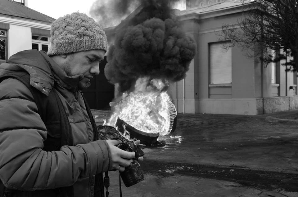 Rio Gallegos | El periodismo fotogrfico es una forma periodstica destinada a la adquisicin, edicin y presentacin de material de actualidad en los medios de comunicacin social. En este contexto, Cristian Robledo es fotgrafo periodista, tambin freelance; y es uno de los que ilustra diariamente las portadas del diario TiempoSur.