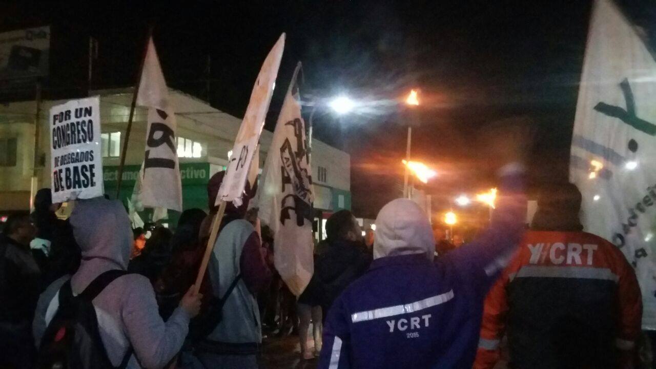 Rio Gallegos | Como estaba previsto para anoche, trabajadores mineros de YCRT se movilizaron con antorchas, en reclamo de la situacin por los despidos.