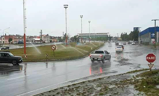Rio Gallegos | Como en otra oportunidad, esta es la imagen que circula en la red social Facebook, con el temporal que azota a toda la regin y sobre todo a Ro Gallegos, en la Autova 17 de Octubre, mientras hace horas llueve sin parar, las bocas de riego funcionan a la perfeccin.