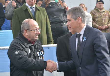 Rio Gallegos | El vicegobernador Pablo Gonzlez y el diputado Claudio Garca participaron hoy del acto central al conmemorarse un nuevo aniversario del inicio de la gesta de Malvinas. Realizaron una ofrenda floral y expresaron su reconocimiento a los veteranos de guerra.