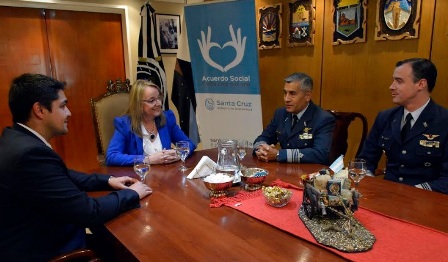 Rio Gallegos | La Gobernadora Alicia Kirchner, recibi al Jefe de la Base Area Militar Ro Gallegos, Comodoro Juan Carlos Aramayo, quien fue acompaado por el Vicecomodoro, Ignacio Cavalieri, en Casa de Gobierno. El motivo del encuentro fue la presentacin formal y protocolar de la nueva autoridad de dicha fuerza.