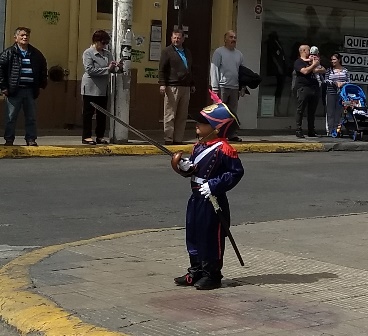 Rio Gallegos | Con menos de un metro, pero un corazn celeste y blanco, el pequeo que trascendi a travs de las redes sociales con los Granaderos en la Casa Rosada, fue parte del izamiento domical.