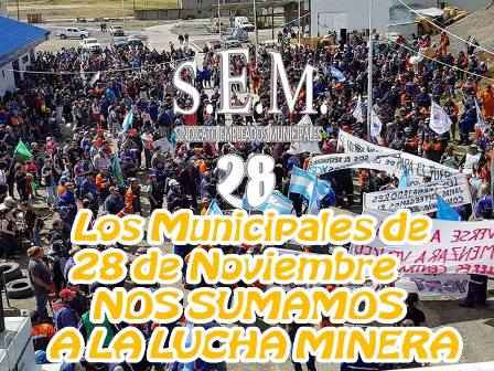 Rio Gallegos | Desde esa institucin gremial y los trabajadores municipales se suman para acompaar la lucha de los trabajadores Mineros. Desde hoy domingo de 10 a 16 hs recepcionaran en su sede: ALIMENTOS NO PERECEDEROS ELEMENTOS DE LIMPIEZA