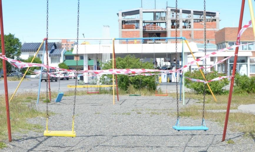 Rio Gallegos | Las primeras horas de la costanera local luego de la inauguracin del nuevo parque no fueron las mejores. La plaza ubicada en cercanas del ACA, donde un menor termin herido, ahora est cubieras de cintas de clausura.