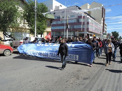 Rio Gallegos | Concentrados en Avenida san Martn y Kirchner, se movilizaron hasta Casa de Gobierno, en donde expresaron su pedido por un aumento salarial acorde a los incrementos de la canasta alimentaria, y que el Gobierno provincial pague en tiempo y forma los haberes de los trabajadores estatales.
