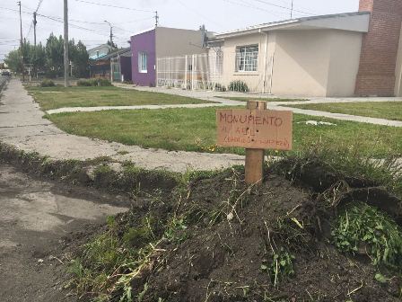 Rio Gallegos | Los vecinos volvieron a mostrar su creatividad para reclamar al Municipio. Se suma a los festejos de cumpleaos de pozos y la plantacin de rboles en los crteres urbanos.