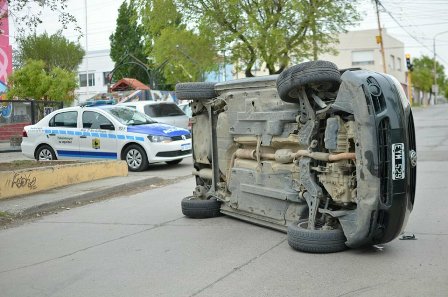 Rio Gallegos | El conductor de un Volkswagen Fox, que transitaba sobre calle Crdoba, perdi el control de su rodado y volc. Intervino Personal de la Comisara Segunda.