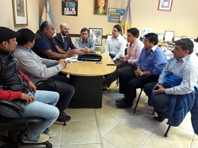 Rio Gallegos | En la jornada de hoy se llevo a cabo el encuentro entre los referentes Sindicales del SEM (Sindicato de empleados Municipales de 28 de Noviembre) Roberto Vera, Ruben Delgado, miembro de la Comisin COPARL el Delegado Jorge Armella y autoridades Municipales de dicha localidad, como el Intendente Hugo Garay, concejales Cristian Trujillo y Tito Lamas y el Diputado Ariel Garay, en tanto que por el Gobierno de Santa Cruz estuvieron presentes el Ministro de Gobierno Fernando Basanta y el Secretario de Gobierno Provincial Martin Chavez.