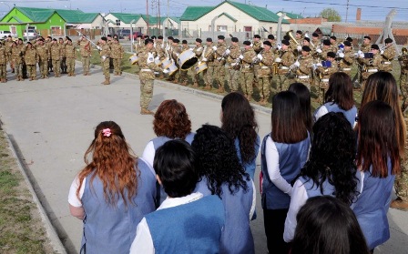 Rio Gallegos | El Intendente de Ro Gallegos, Ingeniero Roberto Giubetich, encabez ayer el acto de inici de ciclo lectivo del Jardn Maternal, Tamborcito de Tacuar, en el marco del convenio firmado la pasada semana entre la comuna y el Ejrcito Argentino.