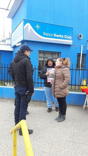 Rio Gallegos | El Partido Obrero repudia el accionar de la comisara de 28 de Noviembre, que mandat a persona de dicha seccional, a intimidar para que se fueran del lugar a militantes del PO, que estaban entregando volantes y la prensa partidaria en inmediaciones de la calle Antrtida Argentina, lateral al Banco Santa Cruz de la localidad, este lunes 2.