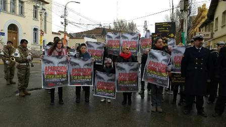 Rio Gallegos | Hoy, se cumplen dos meses de la forzada desaparicin de Santiago Maldonado, es por ello que referentes del MST y del Partido Obrero se hicieron presentes en el izamiento dominical y pidieron por su aparicin con vida.