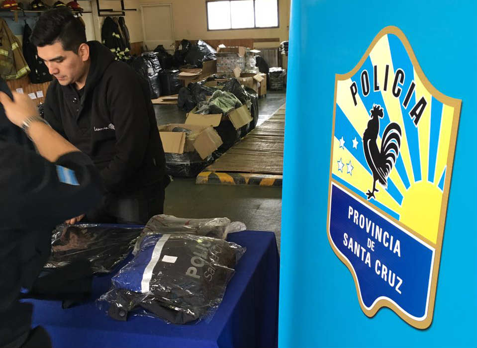 Rio Gallegos | El Ministerio de Gobierno, a travs de la Superintendencia de Administracin, Planificacin y Desarrollo de la Polica de Santa Cruz, dependiente de la Secretara de Estado de Seguridad, y el Ministerio de Desarrollo Social, comenzaron con el proceso de entrega de uniformes y accesorios a efectivos de la Polica de Santa Cruz de la ciudad de Gobernador Gregores.