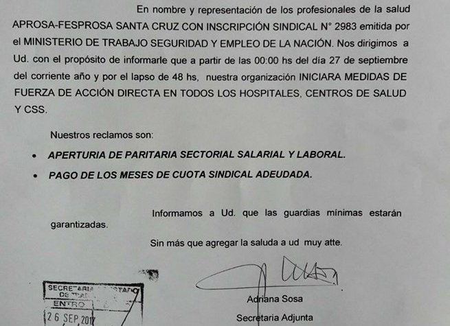 Rio Gallegos | A partir de las 00 horas del mircoles, APROSA comenzar un paro de 48 horas. La medida se llevar adelante en todos los hospitales y centro de salud.