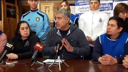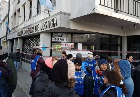 Rio Gallegos | Esta maana, el sindicato de judiciales realiz una conferencia de prensa en donde denunci que el TSJ y el Ministerio de Economa no cumplieron con lo acordado, en relacin al salario. Asimismo, Francisco Gmez dej sentada la posicin respecto a la posibilidad de una armonizacin de la CPS y advirti que el conflicto podra recrudecer. Hace una hora atrs, adems de permanecer bloqueando la puerta del TSJ, llevaron cubiertas y las apilaron en la puerta de la Casa de Gobierno.