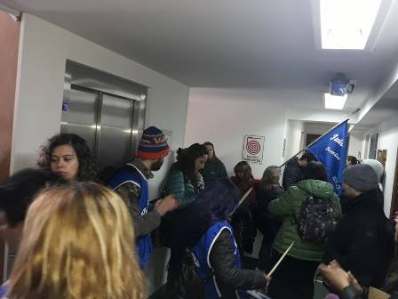 Rio Gallegos | Pasado el ,medioda, los afiliados del gremio de judiciales se manifestaron en el edificio del Tribunal Superior de Justicia y permanecieron por un tiempo prologando a la espera de que la magistrada a cargo diera las explicaciones por el atraso.