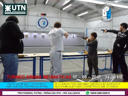 Rio Gallegos | Se disputara el prximo domingo 17, a partir de las 14:30 horas, la fecha de septiembre del Campeonato Clausura para Armas de Aire UTN 2017, disparndose en el polgono de armas neumticas Alberto Heredia del Tiro Federal Patria (calle Pealoza 3741)