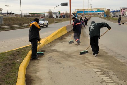 Esta maana, personal del rea de Limpieza Urbana perteneciente a la Secretara de Obras Pblicas y Urbanismo de la Municipalidad, continu desplegando tareas de mantenimiento y limpieza sobre la Autova 17 de Octubre.