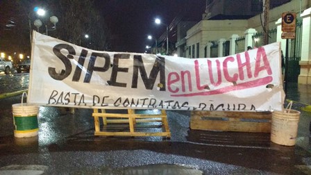 Rio Gallegos | Los trabajadores del SIPEM se encuentran reclamando mediante la instalacin de una carpa frente al edificio comunal, que mantiene desde hace varias semanas, cortado el trnsito de la Avenida San Martin entre Alfonsn y Zapiola. An aguardan reunirse con el jefe comunal, que es el que tiene la autoridad como para dar una respuestas a sus reclamos. TNRG dialog con uno de ellos.