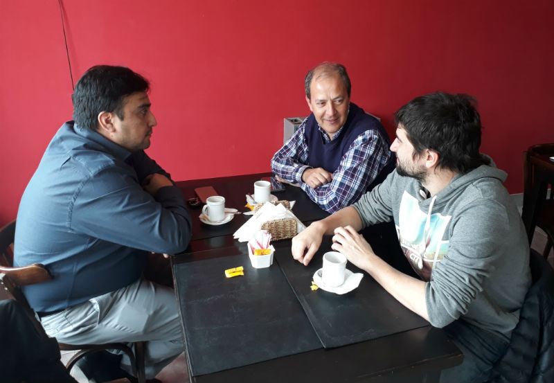 Rio Gallegos | En el marco del arribo a la localidad de una comisin del Banco Santa Cruz, integrada por el Sub Gerente General, Marcelo Loncon, el Gerente de Banca Empresa, Alberto Rositabo y el Gerente de Banca Individuos, Ricardo Marginet se llev a cabo una reunin con el intendente, Sr. Ral Andrade, la secretaria de Gobierno, Prof. Beatriz Sciarra y el secretario de Haciendo, Lic. Francisco Irazoqui, para evaluar entre ambas partes las alternativas comerciales ms viables y ptimas que apacigen o solucionen la problemtica generada por el retiro definitivo del Banco de la Nacin Argentina de El Chaltn.