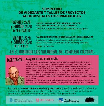Esta importante capacitacin se concretar en el marco de las actividades del 1 Festival de Videoarte en la Patagonia. Los interesados en concurrir pueden escribir a: muestrasartesvisuales@gmail.com