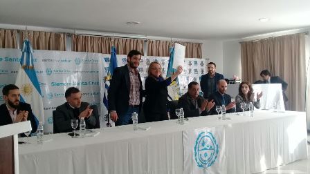 Rio Gallegos | La gobernadora de Santa Cruz, Alicia Kirchner encabez esta tarde un acto en el que se present el convenio entre el Poder Ejecutivo Provincial y la Empresa Oroplata SA, enmarcado en el Programa UNIRSE, que permite financiar distintos proyectos orientados a la Produccin y el Desarrollo Social.