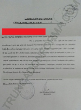 Rio Gallegos | El juez de instruccin Cimini Hernndez dio por cerrada la primera etapa de investigacin por el crimen de Sergio Curin, ocurrido el 11 de noviembre del ao pasado en la localidad de Pico Truncado.
