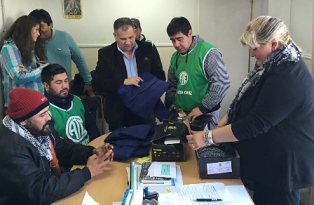Rio Gallegos | El Director de la Regional Zona Norte del Consejo Provincial de Educacin, Alejandro Maidana, recibi esta maana a trabajadores de la Unidad Ejecutora de Mantenimiento Escolar a quienes se les entreg mamelucos y borcegus. A la vez firmaron un acta que establece un cronograma para completar los insumos y herramientas de acuerdo a las necesidades de las tareas que realizan.