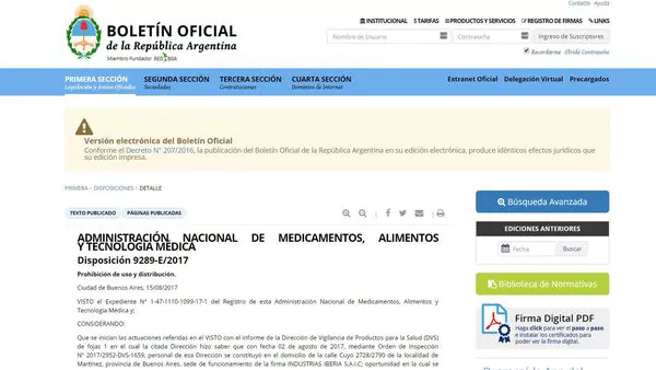 Rio Gallegos | A travs de la disposicin 9289-E/2017, que fue publicada hoy viernes en el Boletn Oficial, la Administracin Nacional de Medicamentos, Alimentos y Tecnologa Mdica (ANMAT) prohibi el uso y la distribucin de dos presentaciones de hisopos porque la empresa que los importa y comercializa no cuenta con "las debidas autorizaciones".